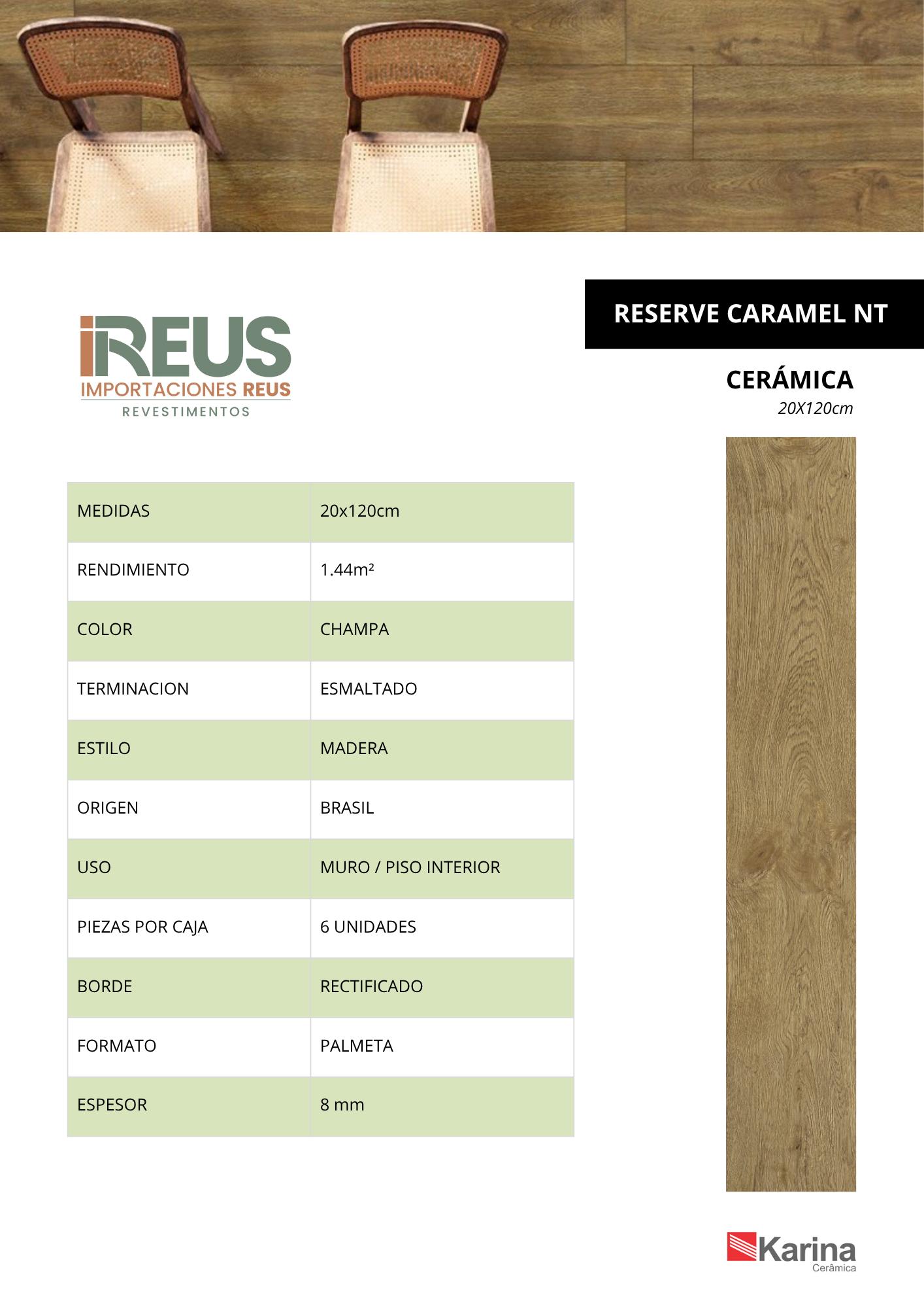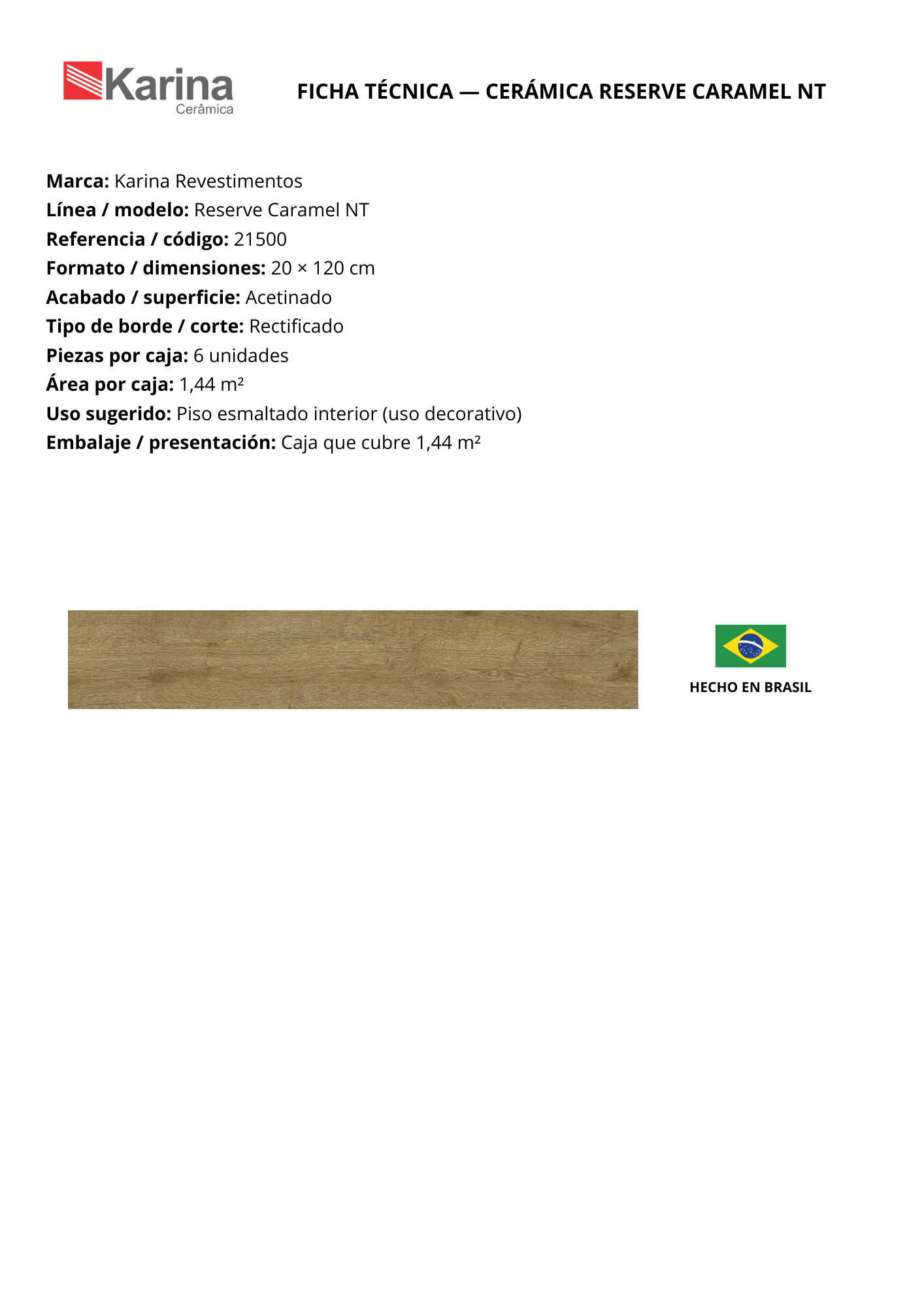 CERÁMICA 20X120cm $7.990xm² - RESERVE CARAMEL NT Stock por sucursal Stock por sucursal $ 11.506 cantidad Agregar al carro Encargar