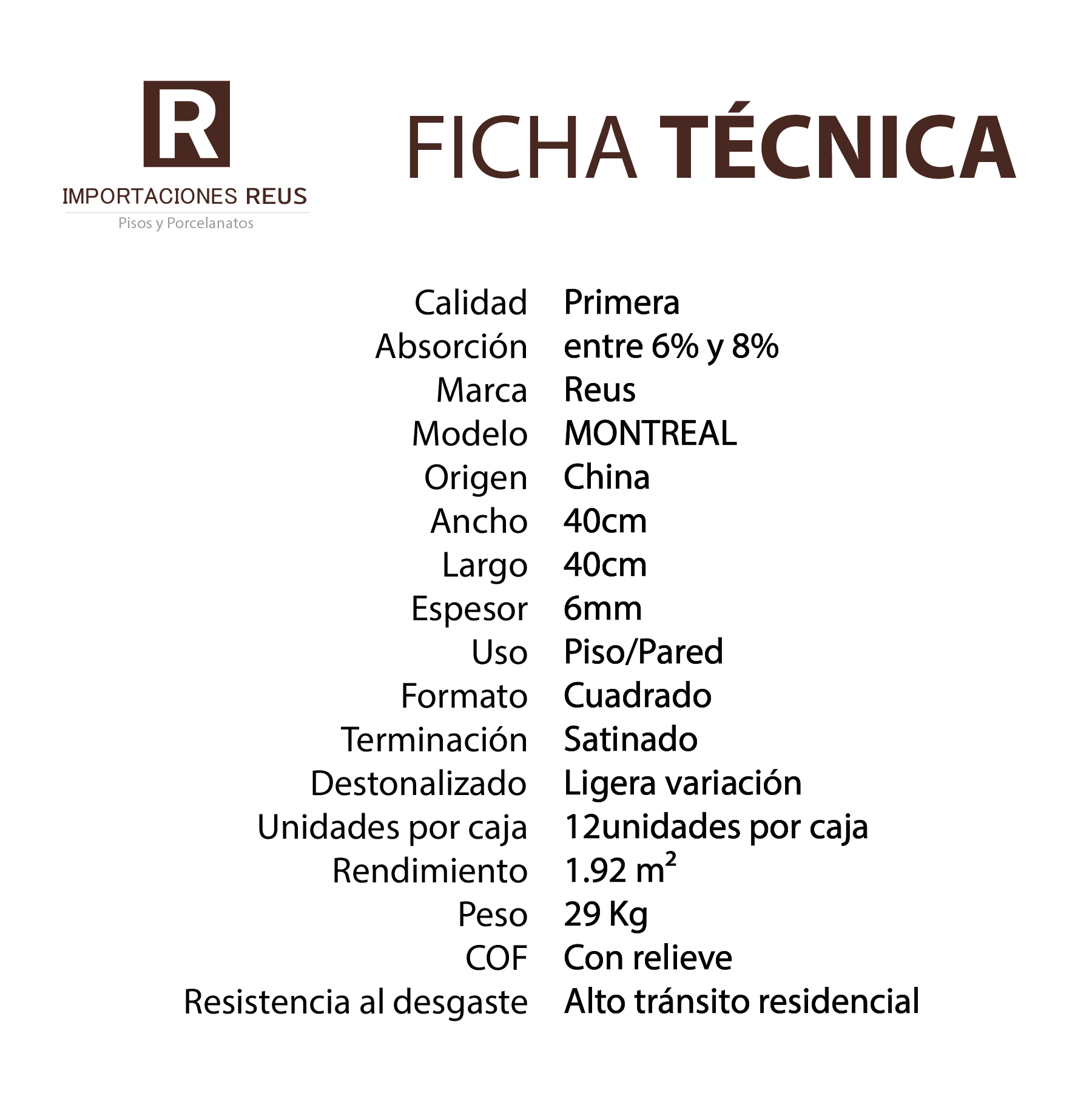 Cerámica 40x40cm $5.790 m²c/iva - Montreal Stock por sucursal Stock por sucursal $ 11.117 cantidad Agregar al carro Encargar *Imagenes de referencia