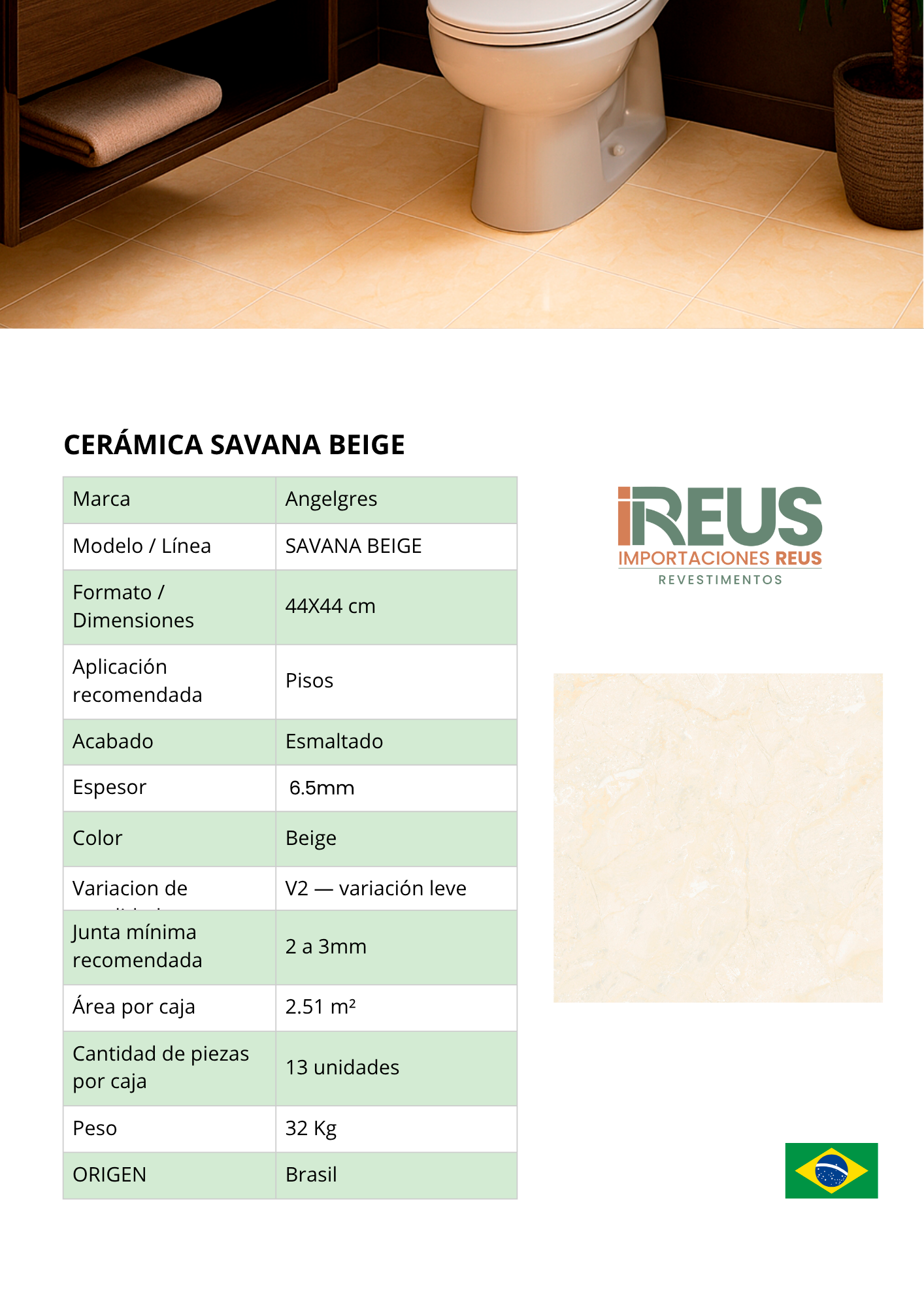 Cerámica 44x44cm - $4.543 c/iva xm² SAVANA BEIGE Stock por sucursal Stock por sucursal $ 11.404 cantidad Agregar al carro Encargar Imágenes de referencia. Varían según la configuración de cada pantalla.