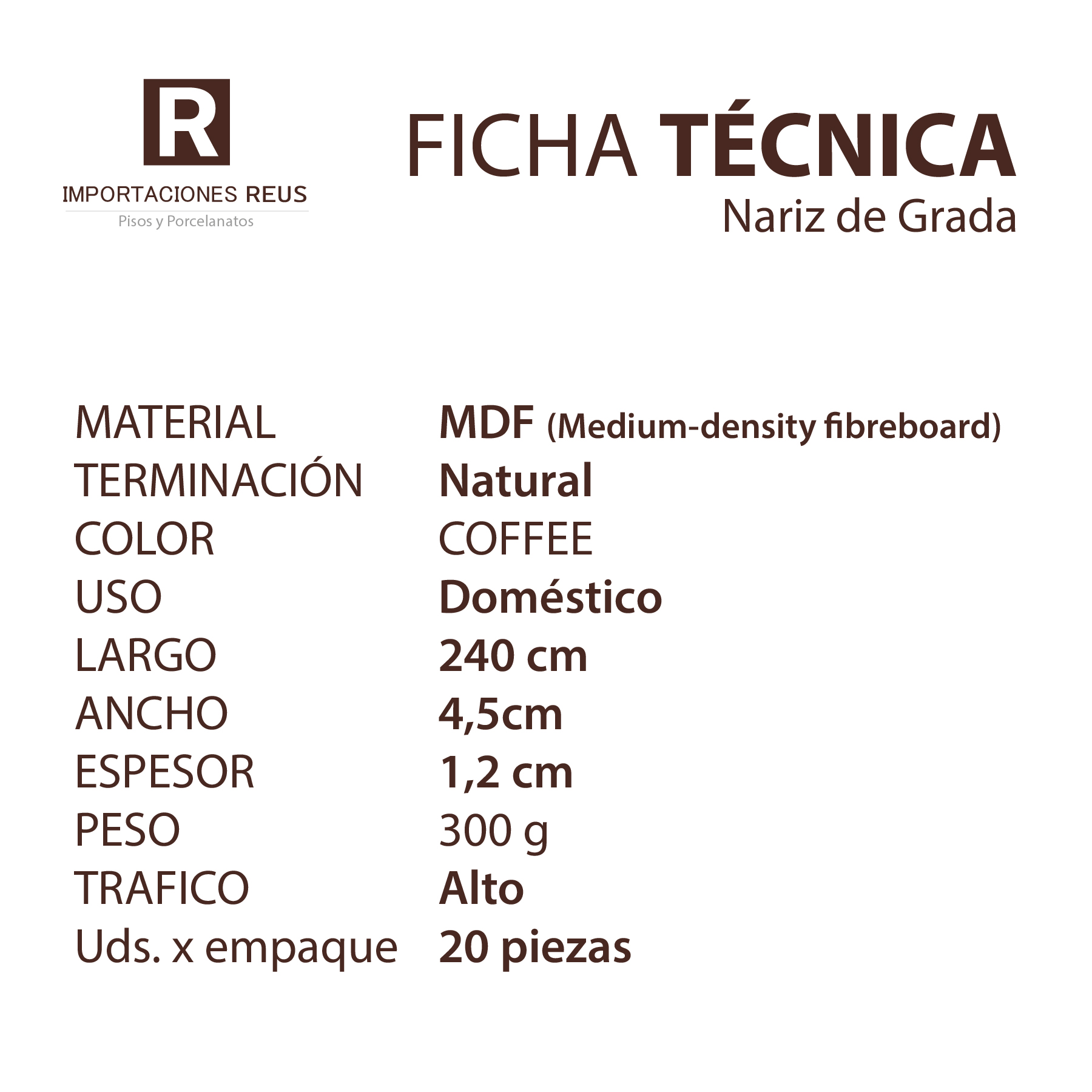 Nariz de grada COFFEE 2.40 mts. $7.990 Stock por sucursal Stock por sucursal $ 8.990 cantidad Agregar al carro Encargar