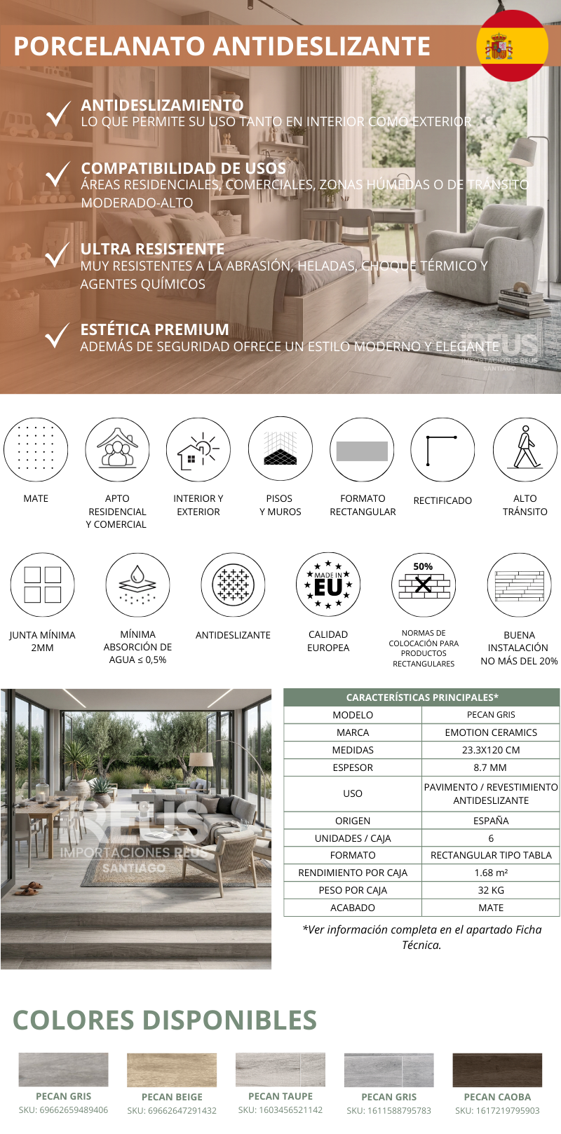 Porcelanato 23.3x120cm $17.990 m² c/iva - PECAN GRIS Stock por sucursal Stock por sucursal $ 30.223 cantidad Agregar al carro Encargar Imágenes referenciales: los colores pueden variar según la configuración de cada pantalla.
