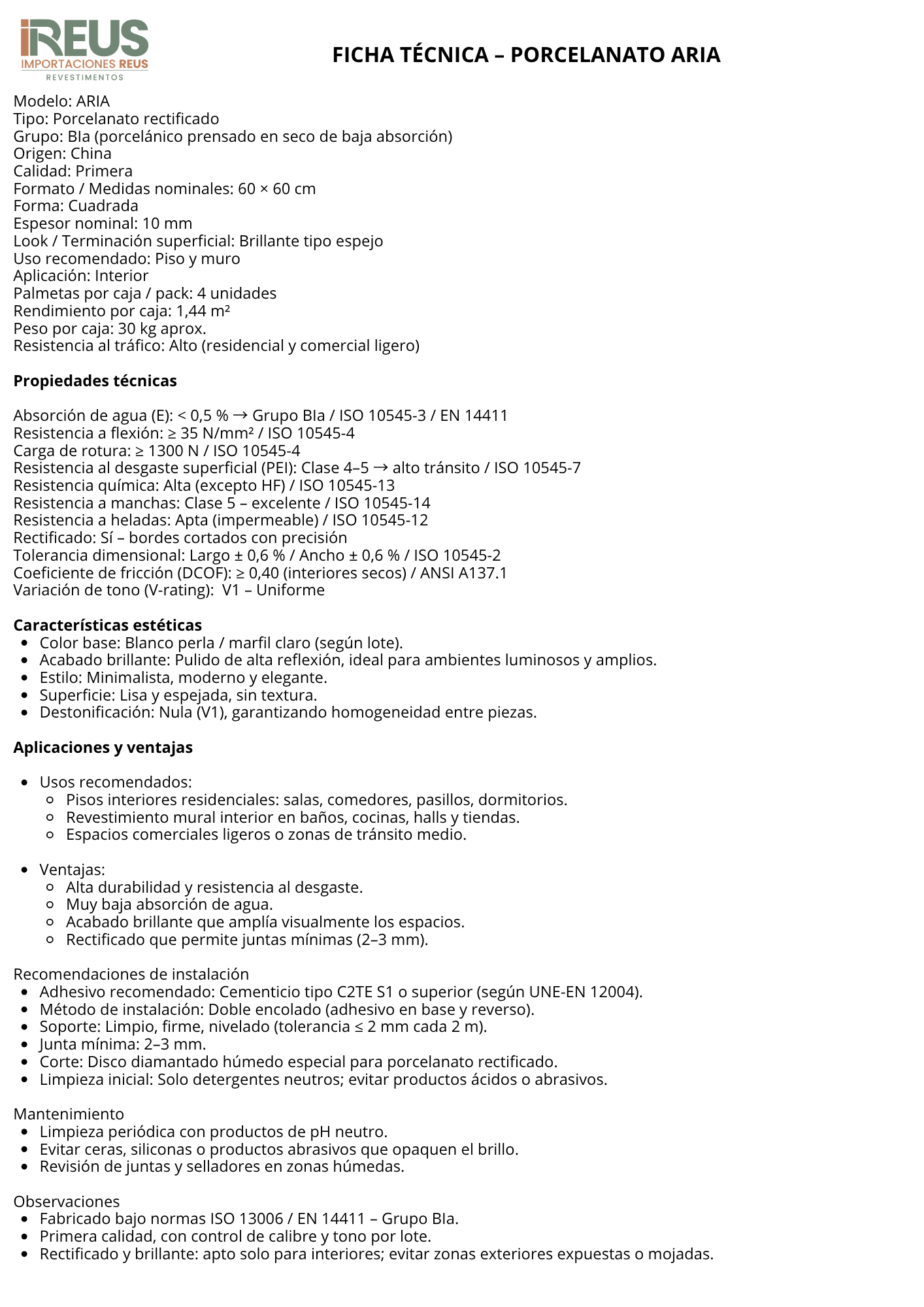 Porcelanato Brillante 60X60cm $8.490xm² - ARIA Stock por sucursal Stock por sucursal $ 12.226 cantidad Agregar al carro Encargar