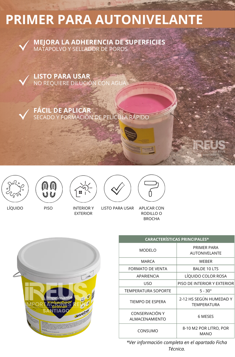 PRIMER PARA AUTONIVELANTE BALDE 10LT - Weberfloor Stock por sucursal Stock por sucursal $ 34.490 cantidad Agregar al carro Encargar Imágenes referenciales: los colores pueden variar según la configuración de cada pantalla.
