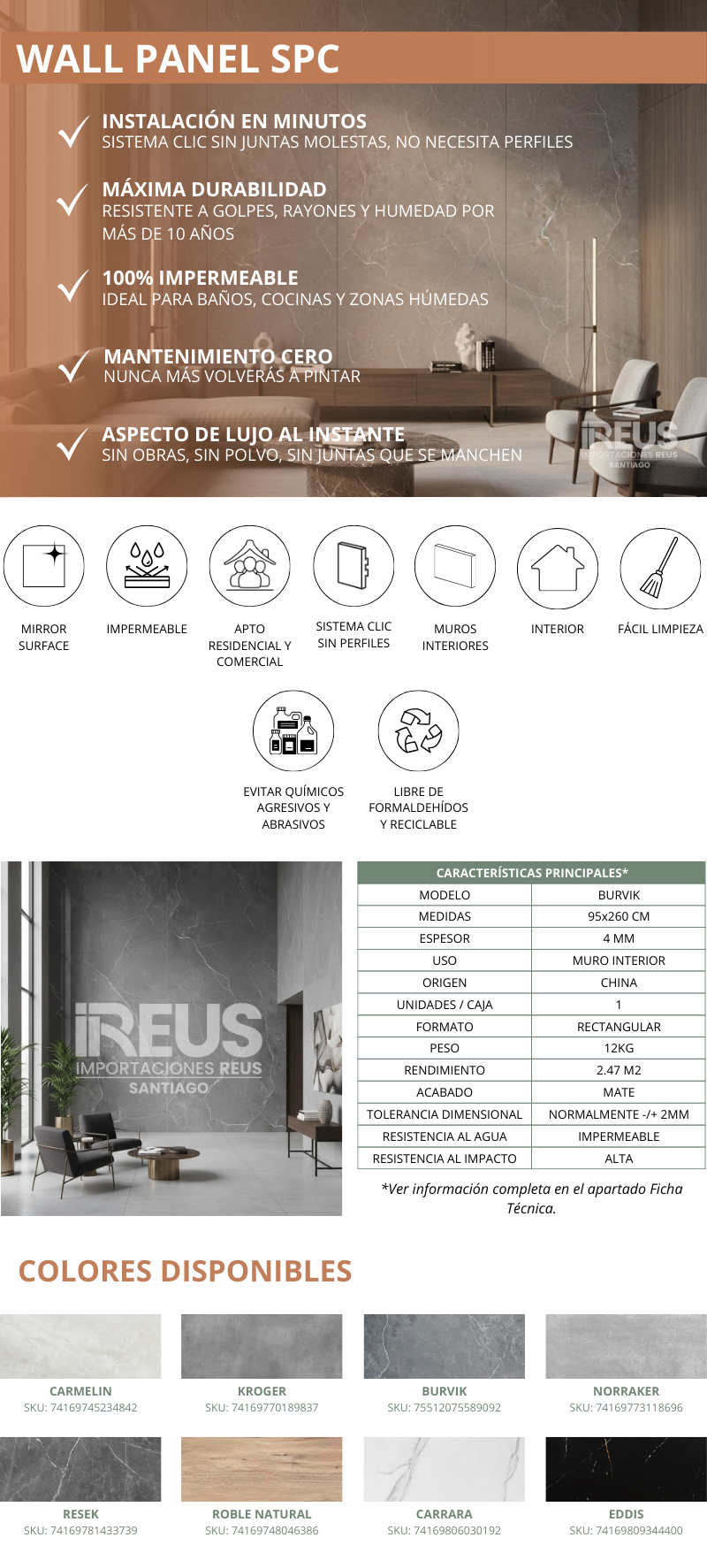 Wall Panel SPC Interior 95x260cmx4mm $10.524 xm² - BURVIK Stock por sucursal Stock por sucursal $ 25.994 cantidad Agregar al carro Encargar Imágenes referenciales: los colores pueden variar según la configuración de cada pantalla.