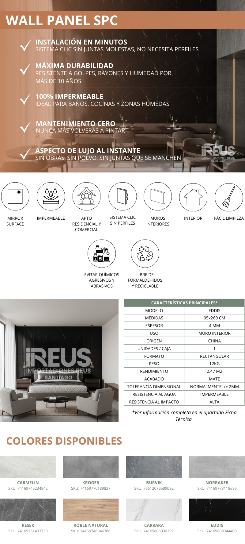 Wall Panel SPC Interior 95x260cmx4mm $10.524 xm² - EDDIS Stock por sucursal Stock por sucursal $ 25.994 cantidad Agregar al carro Encargar Imágenes referenciales: los colores pueden variar según la configuración de cada pantalla.